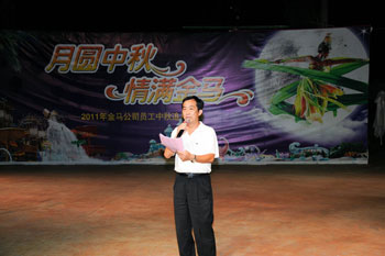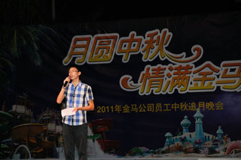 2011年9月13日農(nóng)歷八月十六晚上7:30-9:30,“月圓中秋、情滿(mǎn)金馬”員工中秋追月晚會(huì)以情相聚,在燈籠的點(diǎn)點(diǎn)暖光中,公司職工及家屬將近600人聚首長(zhǎng)江水世界,在滿(mǎn)載金馬濃情的節(jié)目中共度追月良辰。