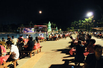 活動(dòng)當(dāng)日,長(zhǎng)江水世界流光溢彩、歌聲飛揚(yáng)。在造浪池沙灘旁,圓月當(dāng)空、濤聲拍岸,領(lǐng)導(dǎo)與員工濟(jì)濟(jì)一堂,共仰明月,齊享美食,并不時(shí)走動(dòng)暢談。公司為到場(chǎng)的所有員工和家屬提供了豐盛的應(yīng)節(jié)食品,包括各式月餅、爽滑雞粥、濕炒河粉、新鮮水果、芋頭、菱角等,現(xiàn)場(chǎng)氣氛和美,其樂(lè)融融,讓員工真正感受到了金馬“家”的溫暖貼心。