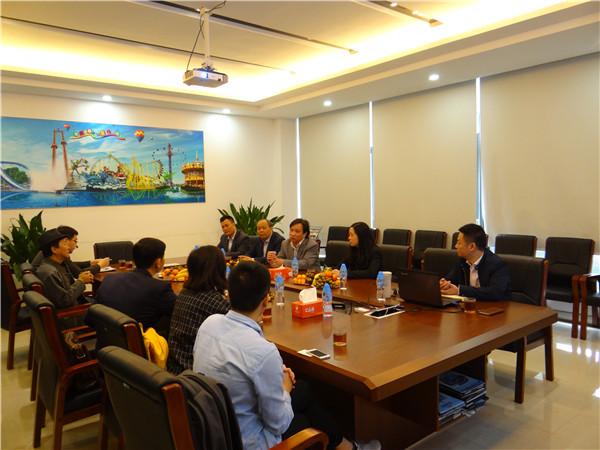 隨后,眾人落座會議室。會談中,劉喜旺總經(jīng)理向到場領(lǐng)導(dǎo)演示了公司最新產(chǎn)品宣傳片,加以一一解讀剖析各產(chǎn)品的創(chuàng)新設(shè)計理念及安全運(yùn)轉(zhuǎn)形式,并對公司技術(shù)創(chuàng)新實力、主要技術(shù)成果及在產(chǎn)品研發(fā)方面取得的成就進(jìn)行了介紹,一番言論頻獲在座領(lǐng)導(dǎo)們的點頭應(yīng)和。在了解了公司管理和技術(shù)的不斷創(chuàng)新后,眾人對金馬目前的發(fā)展?fàn)顩r表示高度認(rèn)可,也對公司的持續(xù)創(chuàng)新發(fā)展提出了寶貴意見。黃書記贊道“金馬現(xiàn)已不再僅是城市設(shè)備的制造供應(yīng)商,更不斷努力成為產(chǎn)品理念設(shè)計與創(chuàng)意研發(fā)的行業(yè)引領(lǐng)者,這份榮譽(yù),金馬當(dāng)之無愧”。鄭院長也表示,“很高興看到今日的金馬已從制造走向創(chuàng)造,從中山窗口走向中國窗口,更不斷走向世界窗口,我們今后的合作已有了良好的基礎(chǔ)條件”。最后,眾人就未來游戲游藝行業(yè)發(fā)展?fàn)顩r與前景進(jìn)行了全面深入的交流互動,會議氣氛熱烈友好。