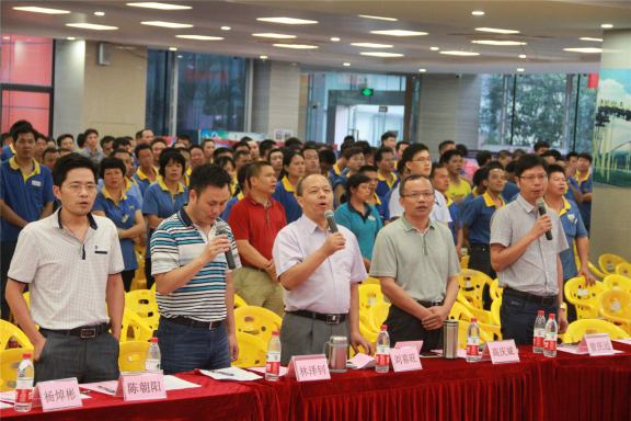 2016年7月30日,精益生產(chǎn)第三年度總結(jié)暨表彰大會在公司飯?zhí)寐≈嘏e行。公司高管劉喜旺總經(jīng)理、曾慶遠副總經(jīng)理、高慶斌副總經(jīng)理、陳朝陽副總經(jīng)理和林澤釗副總經(jīng)理出席了會議并擔任評委。