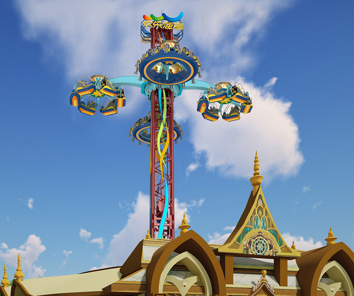 采用雙座艙形式,即集成旋轉(zhuǎn)座艙與擺動座艙,滑行擺動角度多樣化,為游客提供新奇、刺激的游玩體驗(yàn)。另外,飛旋塔最高限制乘坐人數(shù)較同類飛行塔產(chǎn)品更多(承載56人),且其采用的雙油缸安全模式具備安全冗余,由此達(dá)到運(yùn)營效率與安全系數(shù)的雙項(xiàng)提升。