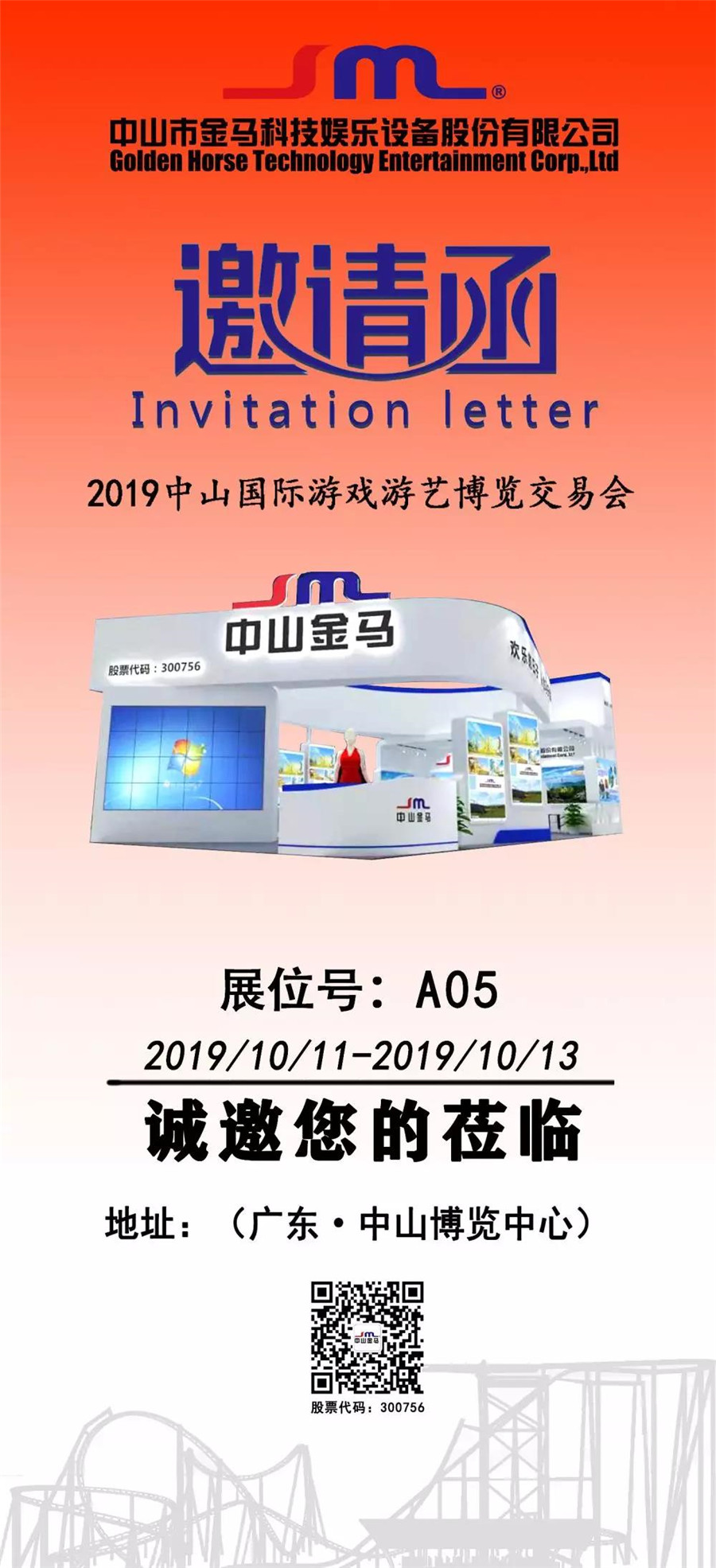 【中山金馬】尊敬的先生\女士:衷心的感謝您及貴公司對(duì)中山金馬一如既往的支持和信賴(lài),我司即將參加2019中山國(guó)際游戲游藝博覽交易會(huì),在此我們誠(chéng)摯的邀請(qǐng)您前來(lái)觀(guān)展。