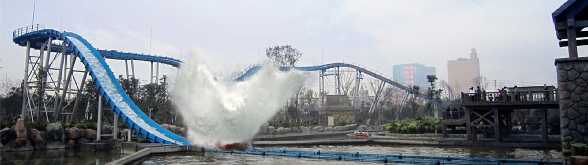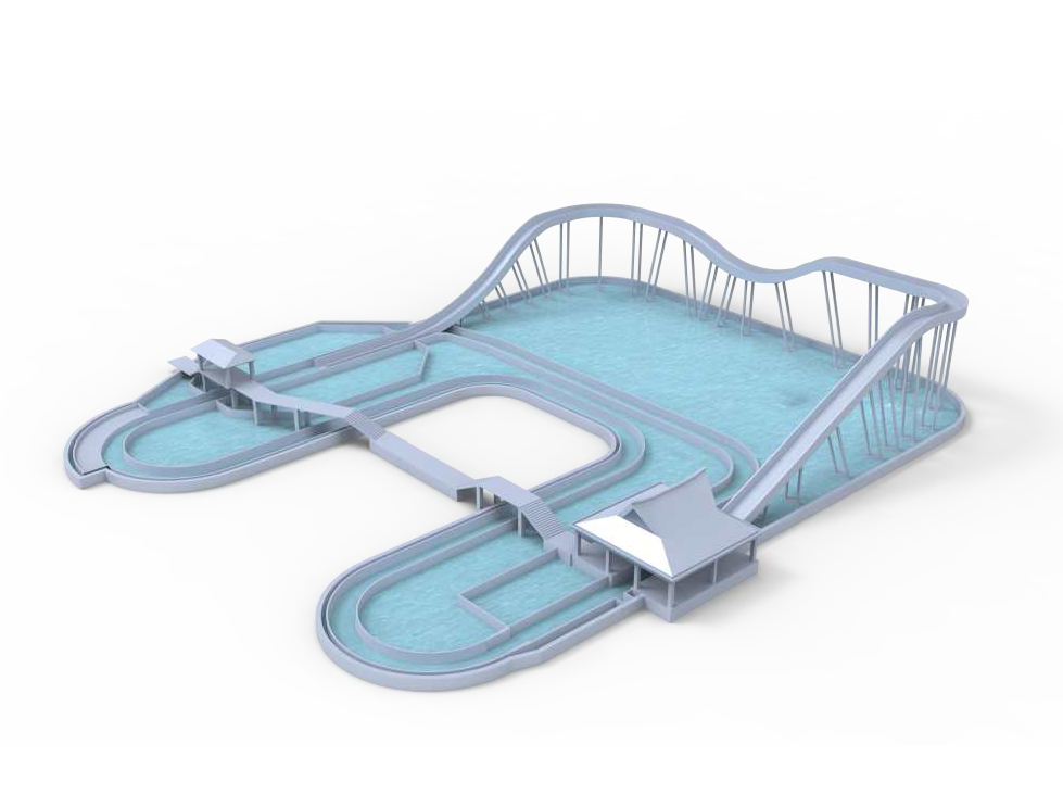 激流勇進(jìn)設(shè)備提升?度17.8?,軌道蜿蜒??,抵達(dá)?坡制動段后經(jīng)過減速到達(dá)下沖段,進(jìn)?快速下沖。乘客在游玩過程中,體會?速沖浪、失重、離?、浪激等多重刺激,其樂?窮。