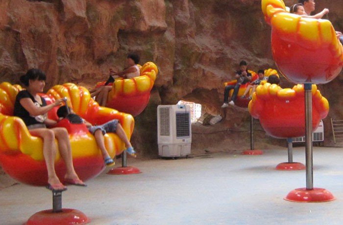 同時(shí)作升降、旋轉(zhuǎn)運(yùn)動(dòng)。整套設(shè)備由座艙、平臺(tái)、氣動(dòng)系統(tǒng)、電氣控制系統(tǒng)等所組成。蝴蝶造型的玻璃鋼座艙,栩栩如生。設(shè)備伴隨著明快的音樂有節(jié)奏地上升和下降,座艙可以乘坐二人,座艙的旋轉(zhuǎn)由乘客自由操作。同一時(shí)間場地里的座艙此起彼伏,猶如一片蝴蝶歡快地上下跳躍、舞動(dòng),使人有如置身于大舞臺(tái),盡情地翩翩起舞。