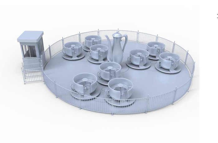轉(zhuǎn)轉(zhuǎn)杯設(shè)備是由軌道、大盤、小盤及杯體組成,美食主題外觀,乘客坐在杯中體驗(yàn)多重復(fù)合轉(zhuǎn)動(dòng)所帶來的旋轉(zhuǎn)樂趣。