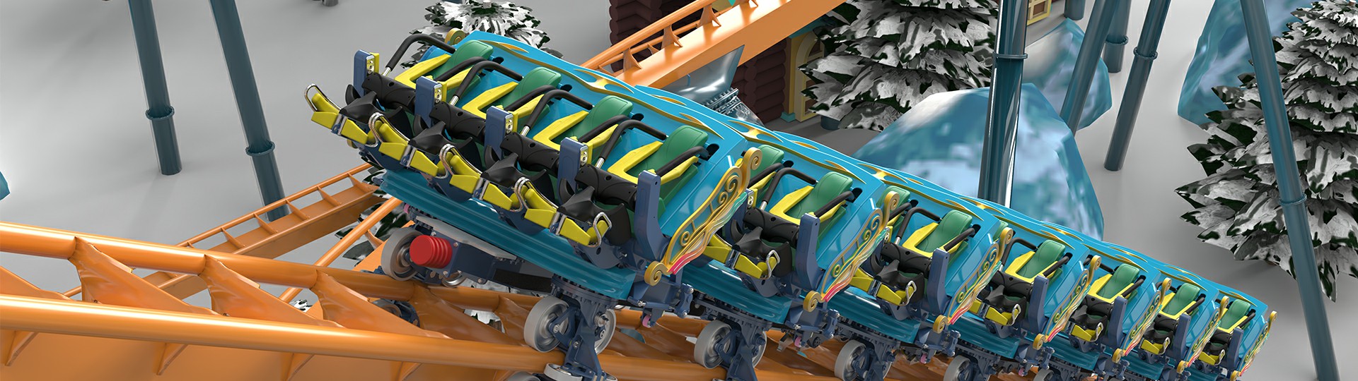 飛行姿態(tài)乘坐式過山車。軌道元素含括急速俯沖飛行、大俯沖飛行、卷餅形倒栽環(huán)、水平環(huán)等,滑行中乘客在軌面仰姿和軌下俯姿兩種姿態(tài)間連續(xù)切換,領(lǐng)略高空翱翔的刺激。與以往的飛行過山車不同,此款飛行過山車車體位于軌道上方,配合水平面上下客平臺(tái),改善了乘客臥姿上下的不適與不便,有效提升舒適度與運(yùn)營效率。