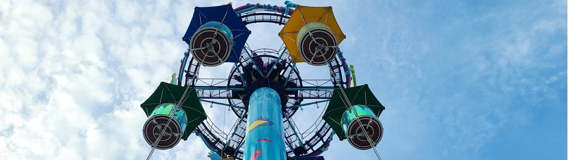跳傘塔是一項使乘客吊籃沿豎直方向做上下往復運動的設備。外觀猶 如打開的傘體,絢爛多彩,使乘客在吊籃內(nèi)愜意欣賞周邊風景。