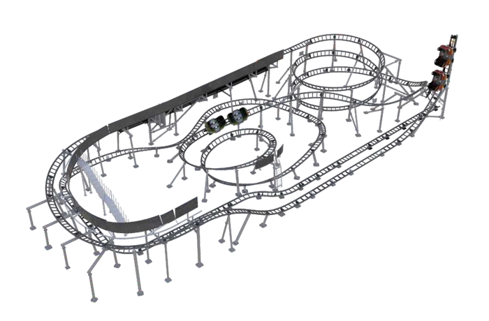 酷炫過山車是應(yīng)用LSM電磁彈射技術(shù)開發(fā)的全新一代過山車,具有瞬時推力大的特點。短行程的發(fā)射使列車3秒內(nèi)完成時速從0到43km/h的加速,強勁的推背感緊接U型回蕩、貼地?速轉(zhuǎn)彎、以及雙層螺旋回環(huán)一氣呵成,讓游玩體驗豐富刺激。無動力自旋式車體配合腿部壓桿,極大提升了乘客的自由感和舒適度。酷炫過山車尤其適合室內(nèi)樂園。