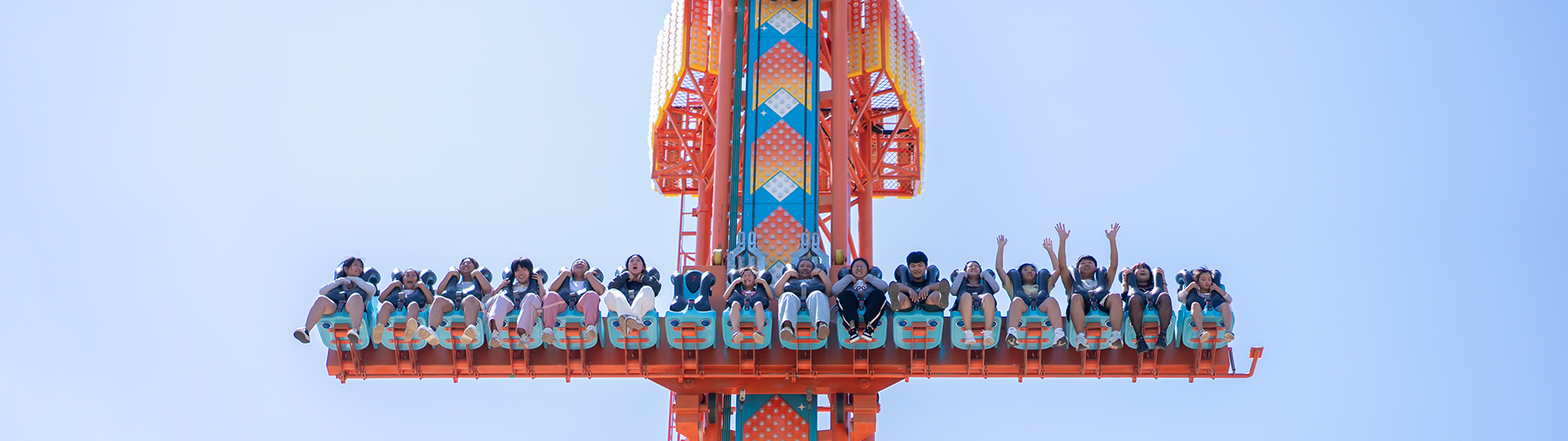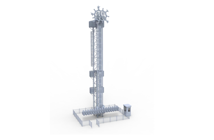 跳躍云霄以跳躍為主題,?六座座艙沿著豎直的?柱軌道作上升、下降和連貫的跳躍運(yùn)動(dòng),使乘客在超重與失重的過(guò)程中體驗(yàn)到跳躍樂(lè)趣。