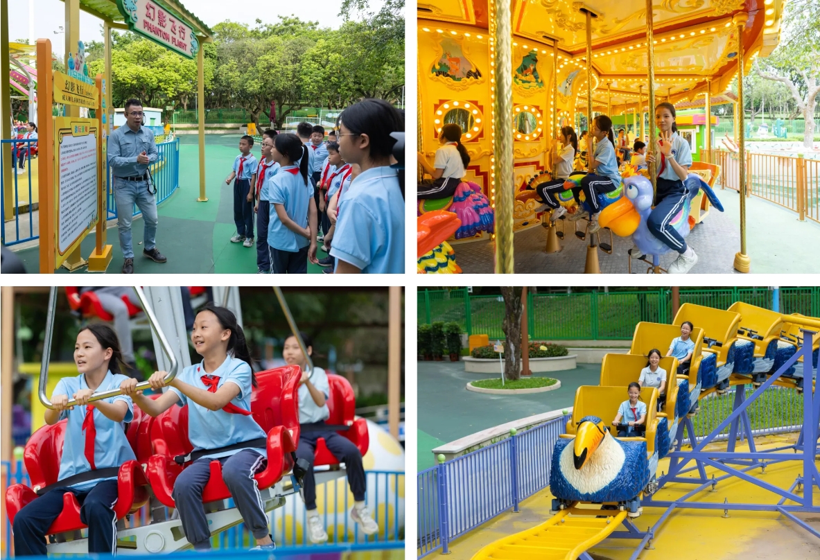 完成對金馬游樂研發(fā)中心及展廳的參觀后,同學(xué)們來到了金馬游樂投資運營的紫馬嶺小馬森林樂園,學(xué)習(xí)游樂園安全游玩的知識,并深度體驗園區(qū)的游樂設(shè)備。